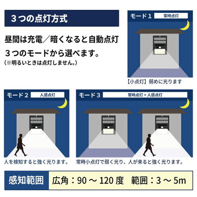 LED ソーラーライト センサーライト 3段切替 人感センサー 屋外 玄関 庭 照明 ガーデンライト 防犯ライト BRW