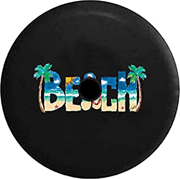 【中古】【輸入品・未使用】Pike Outdoors JLシリーズ スペアタイヤカバー バックアップカメラ穴付き ビーチサイン ヤシの木 サンダル サーフウェーブ ブラック 32インチ