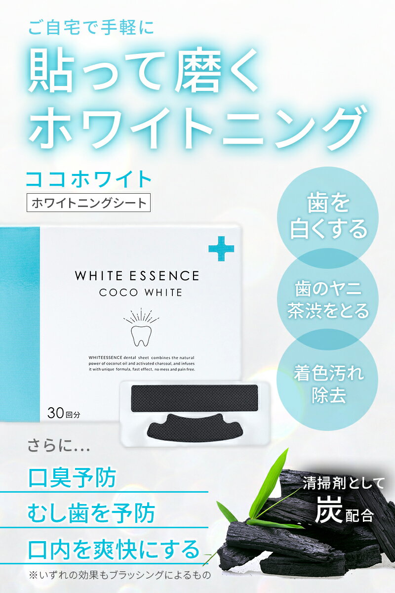 ホワイトエッセンス 歯 の ホワイトニングシート ココホワイト COCO WHITE 1か月分 (30セット) 歯 ホワイトニング テープ 自宅 簡単 セルフ ホワイトニング シール おすすめ 歯を白くする 歯磨き粉 ホームホワイトニング【ネコポス送料無料】