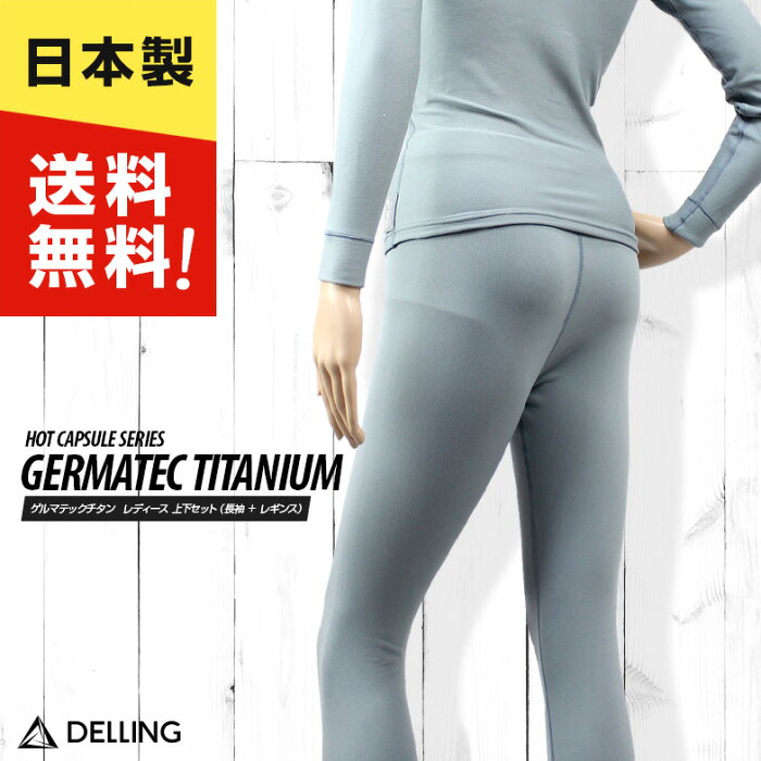 ウェットスーツ 保温インナー レディース 上下セット(長袖 + レギンス/トレンカ)<ホットカプセル ゲルマテックチタン>サーフィン ダイビング ドライスーツ セミドライ 起毛 防寒インナー ウェットインナー 上下 ロングパンツ インナーパンツ 保温 冬 抗菌 SUP