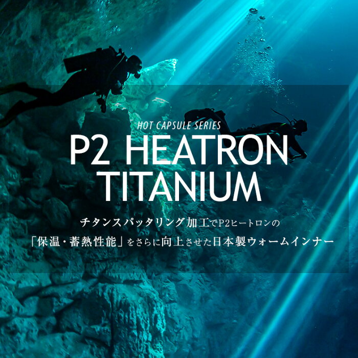 日本製 上下セット 上下 半袖 半そで ショートスリーブ Tシャツ レギンス トレンカ ロングパンツ パンツ ホットカプセル ホットカプセルシリーズ HOT CAPSULE P2 HEATRON P2ヒートロン ピーツーヒートロン ぴーつーひーとろん チタン チタニウム チタン加工 チタンスパッタリング加工 スパッタリング加工 防寒 保温 蓄熱 温熱 蓄熱 防水 断熱効果 ハイネック 日本製 Made in Japan 伸縮 ストレッチ フィット ウェットスーツインナー ドライスーツインナー ダイビングインナー インナーウェア アンダーウェア インナー 冷え予防 冷え対策 ケガ対策 ケガ 寒さ対策 寒さ予防 疲労軽減 サーフィン ダイビング ウィンタースポーツ スキューバダイビング スクーバダイビング フィッシング ヨット 沢登り カヤック 釣り フィッシング マリンスポーツ ウォータースポーツ アウトドア フェス ヨガ スキー スノボ スノーボード バイク 自転車 ジム商品説明 チタンスパッタリング加工でP2ヒートロンの「保温・蓄熱性能」をさらに向上させた日本製ウォームインナー。