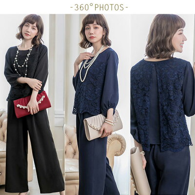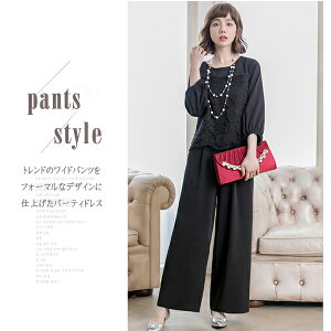【期間限定sale 2000円off】パーティードレス パンツ 大きいサイズ 結婚式 ドレス パンツドレス セットアップ ロング 袖あり パーティドレス 結婚式ドレス パンツスタイル フォーマル レースモチーフ ワイド パンツドレス【dsp069】