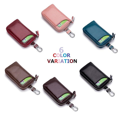 本革 キーチェーン 付き カラフル スマートキーケース 6連 カードポケット 全6色 CL-965 キーケース 鍵ケース カーキーホルダー キーポーチ 鍵入れ レザー 牛革 カード収納 カードケース カード入れ メンズ レディース シンプル おしゃれ かわいい ポイント消化